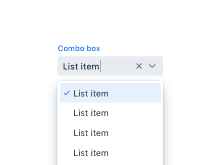 Combo Box allows the user to choose a value from a filterable list of options presented in an overlay. See Combo Box